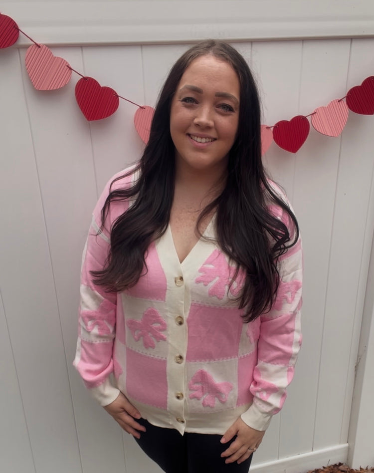 This is the CUTEST cardigan that you could wear as either a top buttoned or you can unbutton and wear as a top. It would be super cute with a pink or white tank underneath. It’s so soft and the design and colors are perfect!
