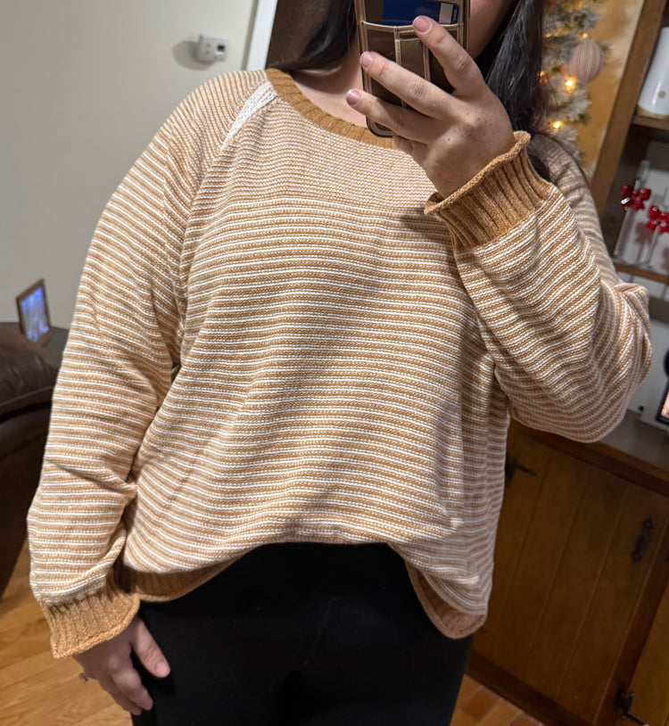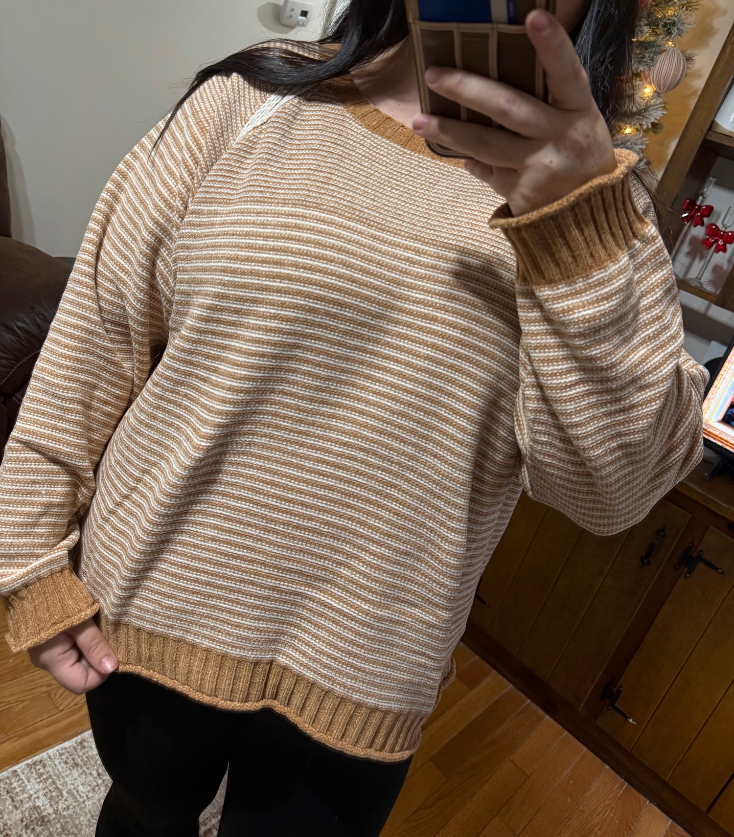 the fit, the fabric, the color! Perfect addition to your thanksgiving and fall wardrobe! It’s a chenille material and it’s SO SOFT!!
