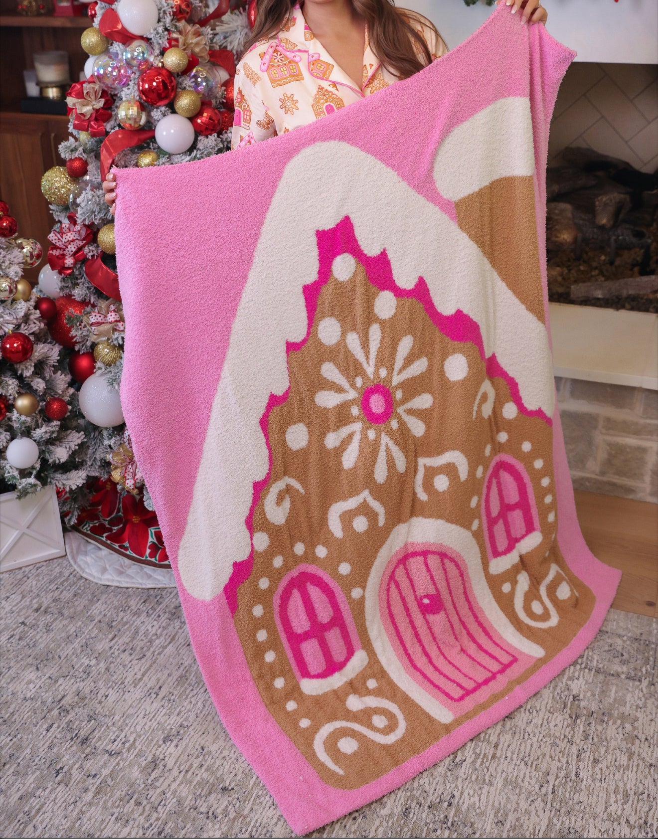 WHIMSICAL GINGERBREAD HOUSE BLANKET